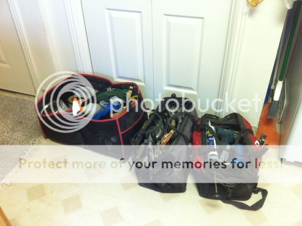 The 2 fellows in the truck came into the house, looked around and deposited their tools. Lots of tools.